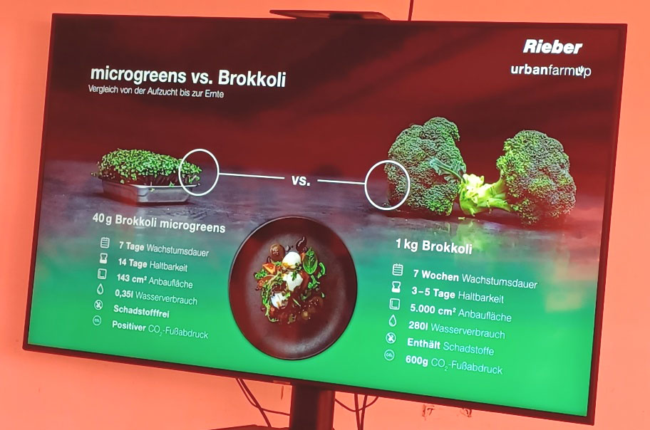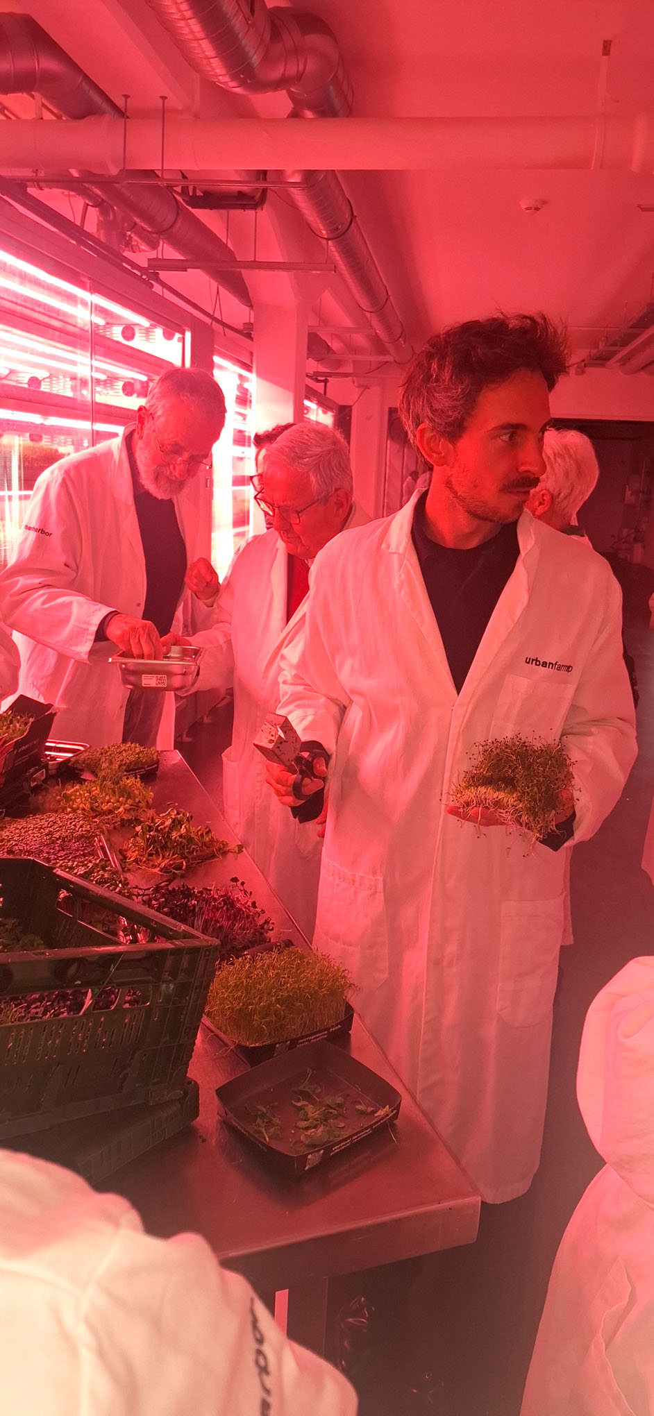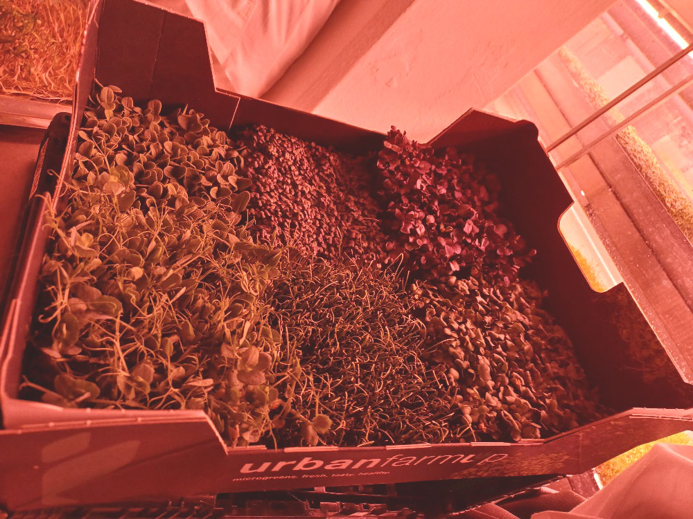 Besonders eindrucksvoll ist der Produktionsstandort selbst. Die Pflanzen wachsen im urbanharbor in umgenutzten unterirdischen Flächen, teilweise in ehemaligen Luftschutzbunkern. Diese nachhaltige Flächentransformation nutzt vorhandene Strukturen und sorgt durch natürliche Isolation für einen vergleichsweise geringen Energiebedarf. Max Maier Junior, Sohn des Gründers von urbanharbor, führte uns durch die „Underground Farm“. Im Zentrum der Produktion stehen sogenannte Microgreens – junge Gemüse- und Kräuterpflanzen, die bereits wenige Tage nach der Keimung geerntet werden. Trotz ihrer geringen Größe haben sie eine besonders hohe Nährstoffdichte. Studien zufolge enthalten sie ein Vielfaches an Vitaminen und sekundären Pflanzenstoffen im Vergleich zu ausgewachsenen Pflanzen.